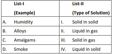 The Henry's law constant \(\left(\text{K}_\text{H}\right)\) values of three gases (A, B, C) in water are \(145\), \(2 \times 10^{-5}\) and \(35\) kbar, respectively. The solubility of these gases in water follow the order:
