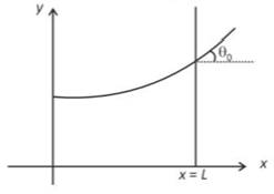 Consider a water tank shown in the figure.It has one wall at x = L and can be taken to be very wide in the Z direction.When filled with a liquid of surface tension S and density P, the liquid surface makes angle \(\theta_0\).(\(\theta_0 \,<<\,1\)) with the x-axis at x = L. If y(x) is the height of the surface then the equation for y(x) is