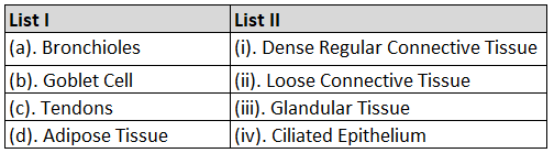 Match List-I with List-IIChoose the correct answer from the options given below