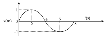 The x-t graph of a particle performing simple harmonic motion is shown in the figure. The acceleration of the particle at \(t = 2s\) is
