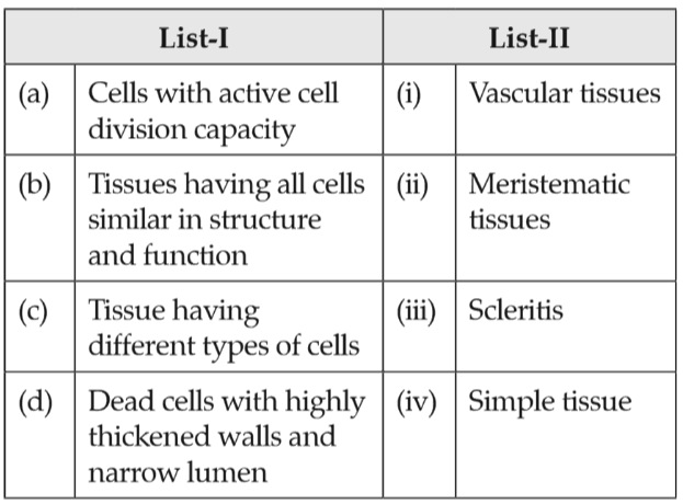 (a)-(ii); (b)– (iv); (c)– (iii); (d) – (i)