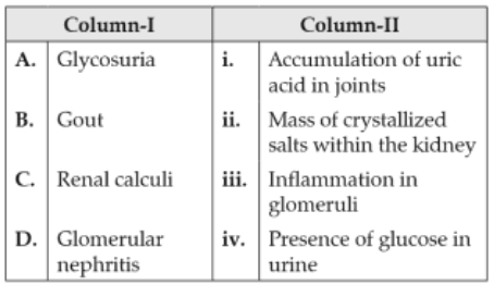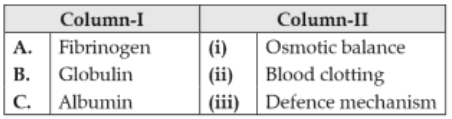 Match the items given in Column I with those in Column II and select the correct option given below :