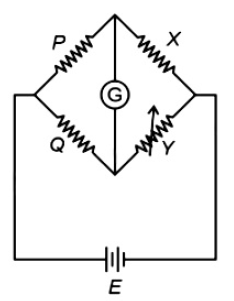 A wheat stone bridge is used to determine the value of unknown resistance X by adjusting the variable resistance Y as shown in the figure. For the most precise measurement of X , the resistances P and Q :